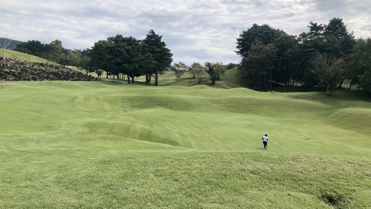 3人でのラウンドとなった今回。コースに出てみると松が仕切りになっており「清里丘の公園」と似た雰囲気を感じた。グリーンは1グリーンでかなり綺麗。ピンが奥に切ってあるコースが多く、芝目もすごく速かった。